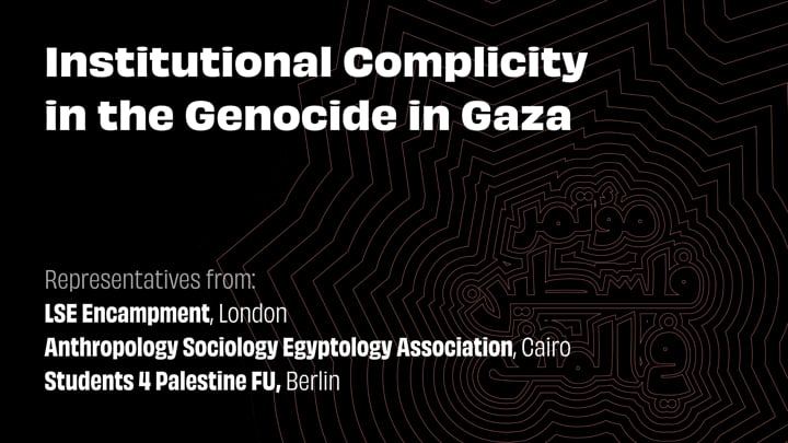 Student representatives share first-hand accounts of activism for Palestinian Liberation on campuses worldwide. The panel explores how students have risen up to answer Gaza's call, and how their activism is shaping and being shaped by their local contexts. Universities are now front lines of capitalist, imperialist violence, with repression reminiscent of the 1968 protests. Speakers discuss their movements' motivations, actions, successes, setbacks, and goals, offering valuable lessons and connections in the shared struggle for Palestinian freedom.