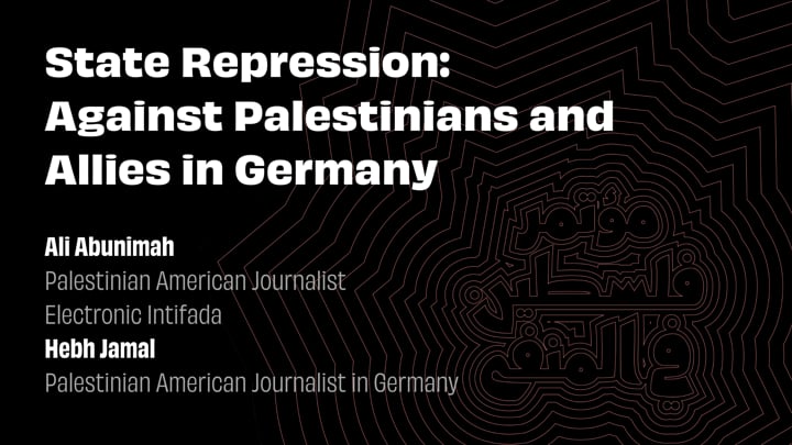 Since October, German police and cultural institutions have deployed harsh measures to repress Palestine solidarity through event cancellations, bans, threats, arrests, and house raids. German media participates in this repression by spreading racist stereotypes, doxxing activists, and falsely portraying the movement as antisemitic. This panel explores the underlying motivations behind the German state's actions, and the growing dangers for individuals and collectives expressing solidarity with Palestine.