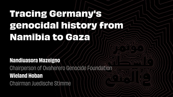 Over 120 years ago, Germany committed the first genocide of the 20th century against the Nama and Herero people. Today, paradoxically, Germany poses as an authority on what qualifies as genocide, often forgetting its own colonial and genocidal past. This pattern resurfaces within each protest movement, including decades of repression of Palestine solidarity. For 76 years, Germany has defended Israel's ethnic cleansing of Palestinians while ignoring the victims. This panel highlights Germany's history of genocidal imperial violence and unites victims in a shared experience.